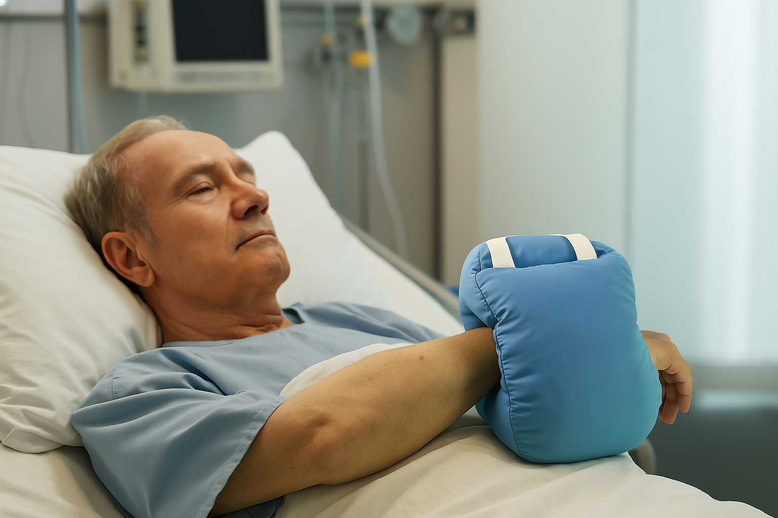 Odciąża dłoń i przedramię, redukuje ucisk i ułatwia prawidłowe ułożenie ręki u pacjentów leżących.